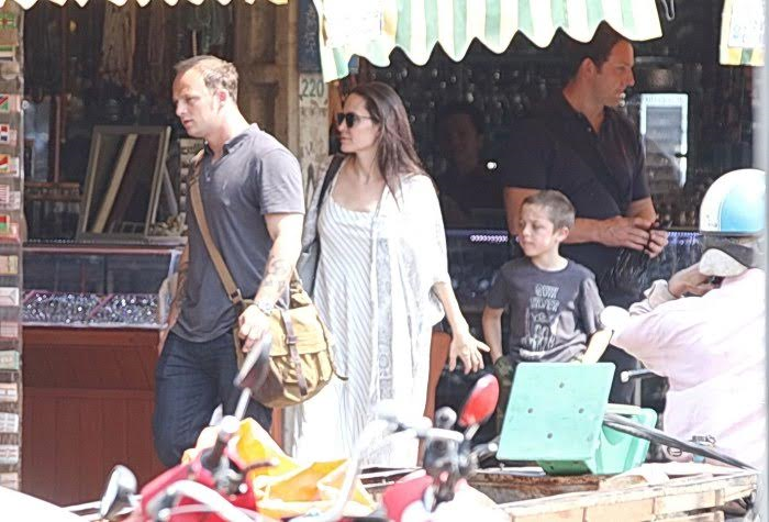 Photos show them after they reportedly snuck out of her luxury hotel in Cambodia. He also bought Jolie and her twins Knox and Vivienne an expensive gold bracelet and she allowed him ride in the same rickshaw with her kids, according to Radar. That's what bodyguards do, no?
